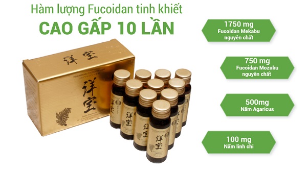 Nhờ hàm lượng Fucoidan cao dạng nước nên cơ thể dễ dàng hấp thu cho hiệu quả nhanh hơn, giúp cơ thể phục hồi nhanh chóng và an toàn. Sản phẩm có chiết xuất từ tự nhiên nên an toàn và không gây tác dụng phụ cho người sử dụng.